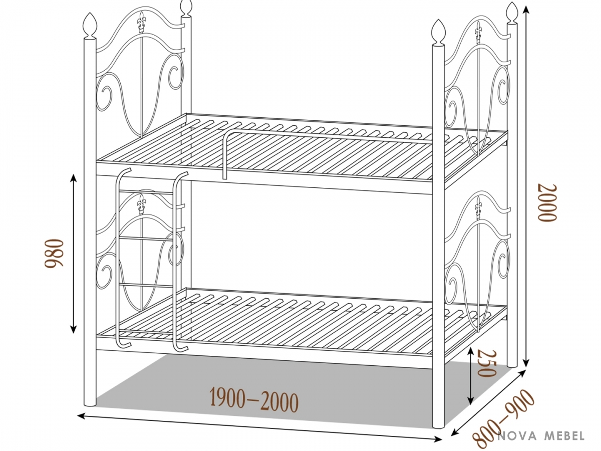 Кровать 2 яруса Диана 1900, 2000 х 900 Металл - дизайн